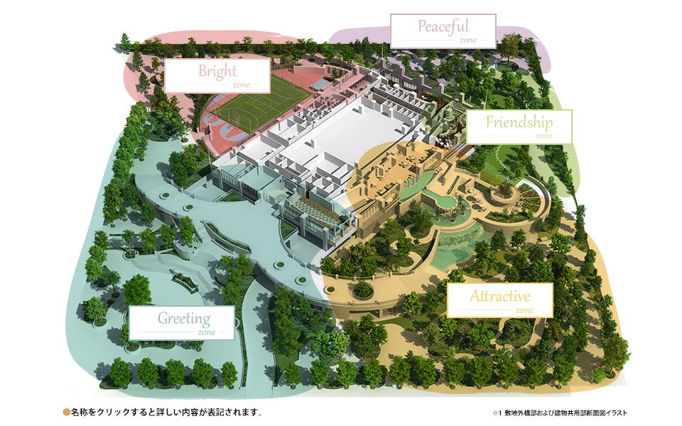 ランドスケープデザインをディズニーランドでおなじみの「オリエンタルランド」が監修しており、南側が広大な運河に面している晴海の開放感を生かしたランドスケープデザインとなっています。