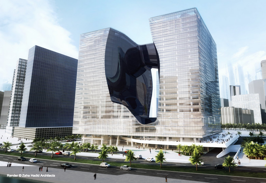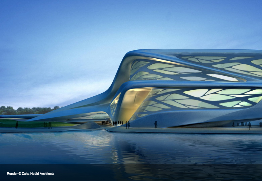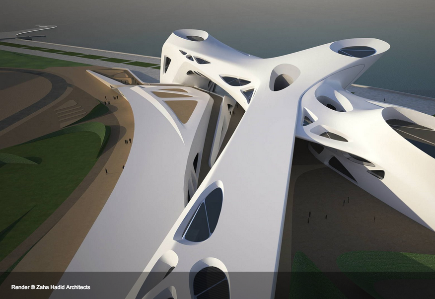 これぞ「アンビルトの女王」ザハ・ハディド建築!と言わんばかりの強烈なデザイン案が出てきます。。。汗