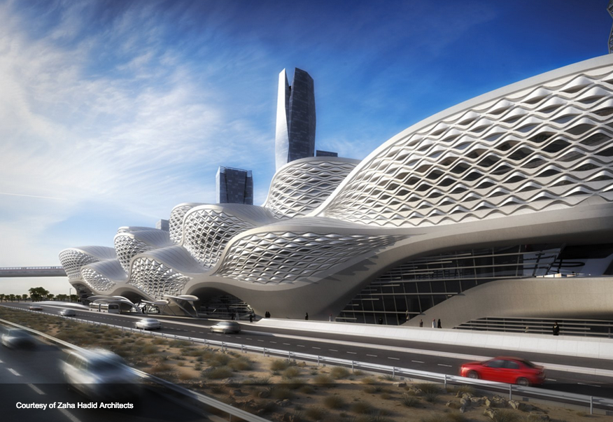 サウジアラビア・リヤドの地下鉄駅です。国際コンペでザハ・ハディドが勝利しました。他にはない圧倒的な外観・・・実は内観も凄いんです。