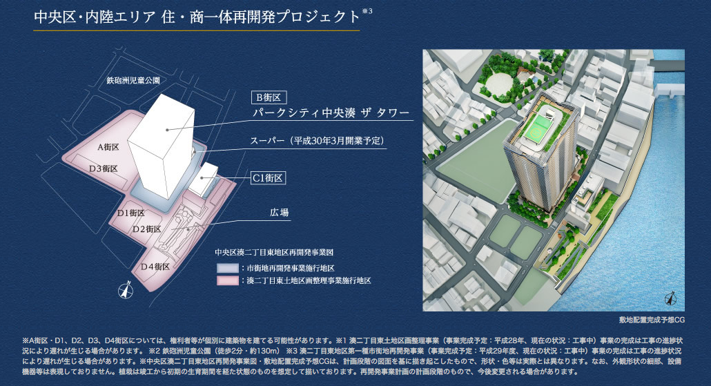 この地に三井不動産が約20年の月日をかけて、ようやく2017年11月に完成予定の大規模再開発プロジェクト『パークシティ中央湊 ザ タワー』
