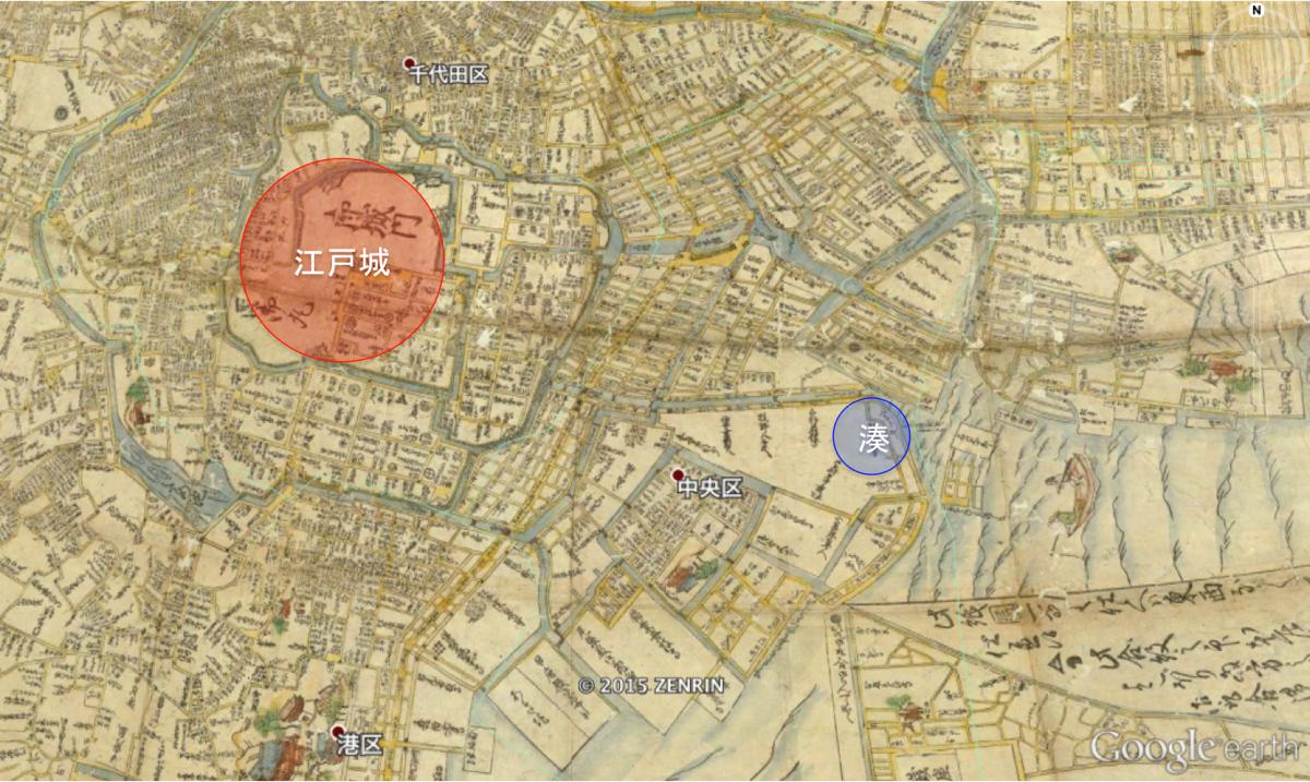 遡ること江戸時代、現在の皇居付近には江戸城が存在していました。当時は現在の月島や勝どき晴海など、湾岸といわれる陸地はまだ存在しておらず、この時に江戸城への様々な物資の水路輸送の玄関口として港の役割を担っていた地域が、”湊”です。