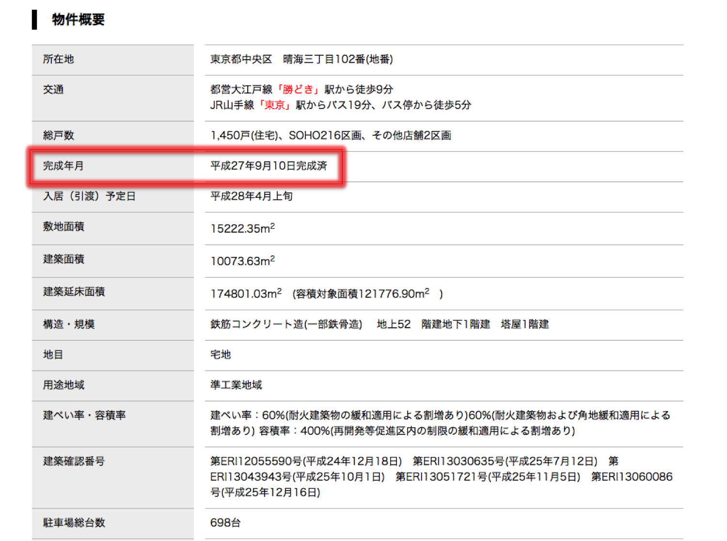 公式HPの物件概要にも、”完成済”としっかり表記されていますね。