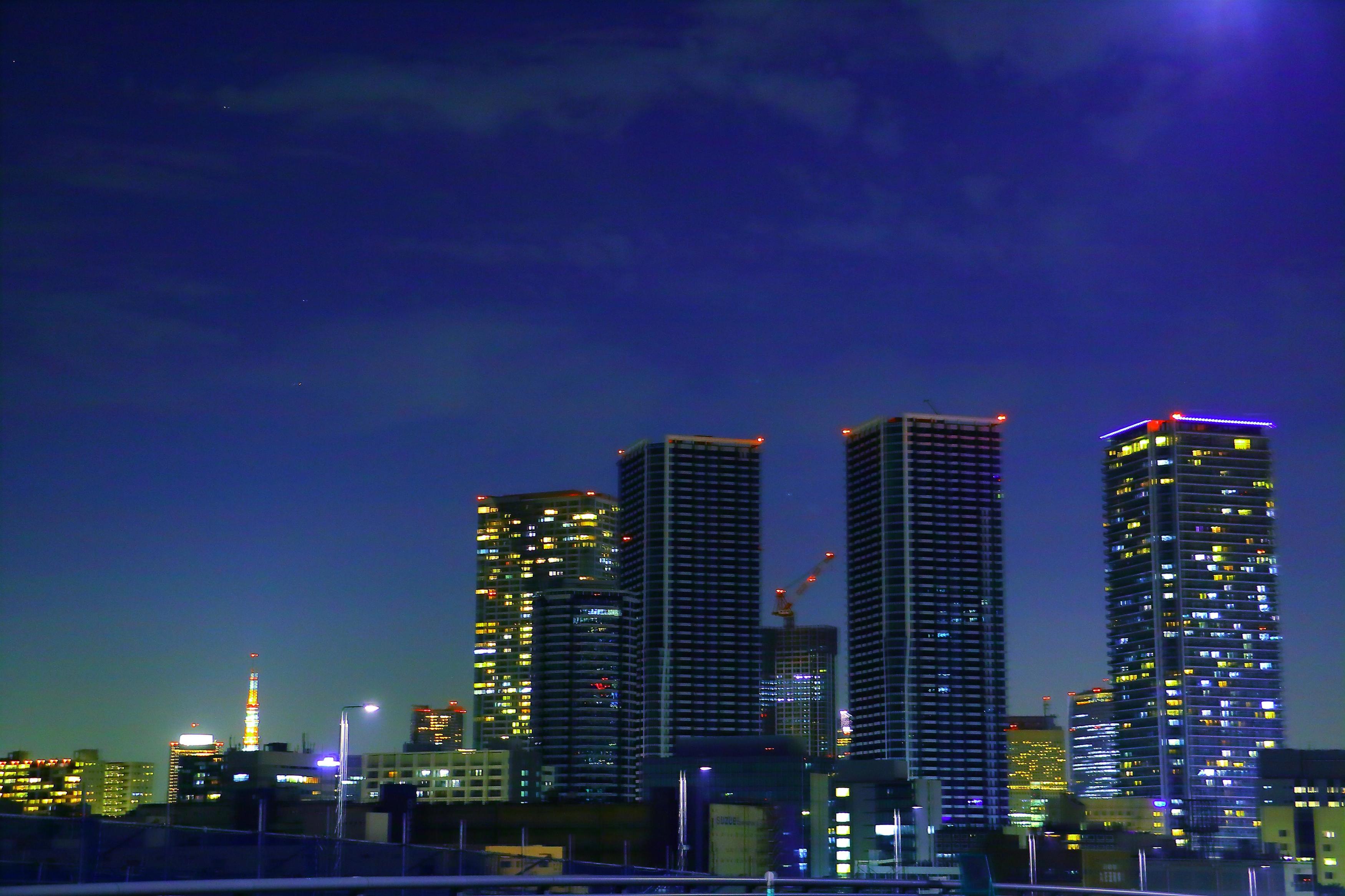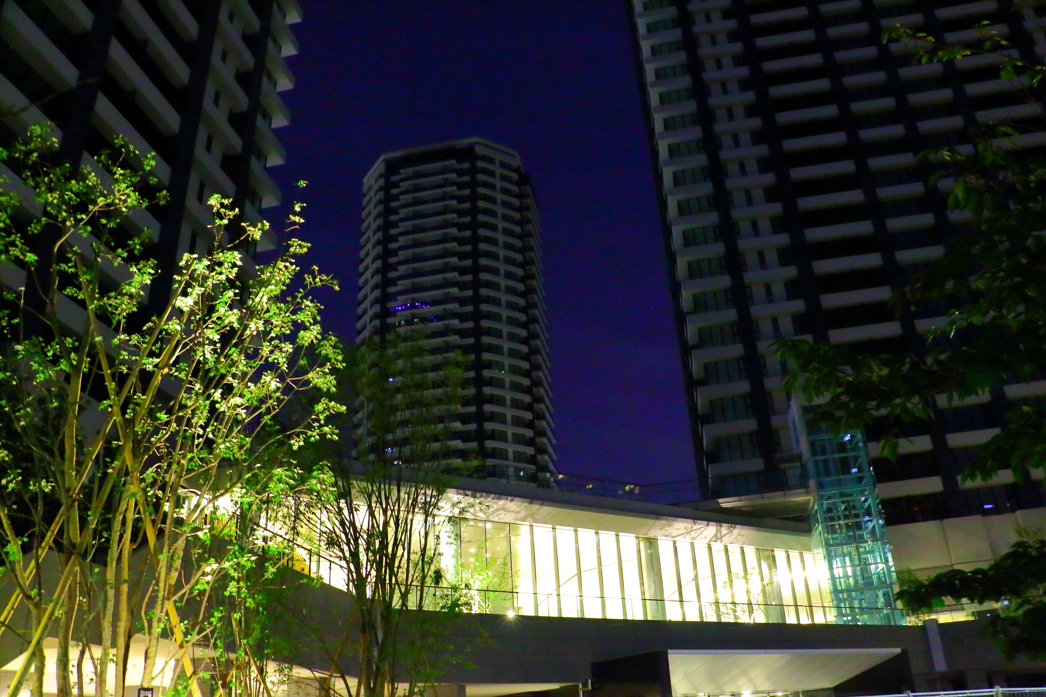 住友不動産は双塔と謳っていますが、遠くから見ると、隣のスカイリンクタワーと完全に3兄弟ですね。昼間に近くで見ると、外観デザインが異なるので、違いはわかりますが、暗くなってくると、3兄弟です。
