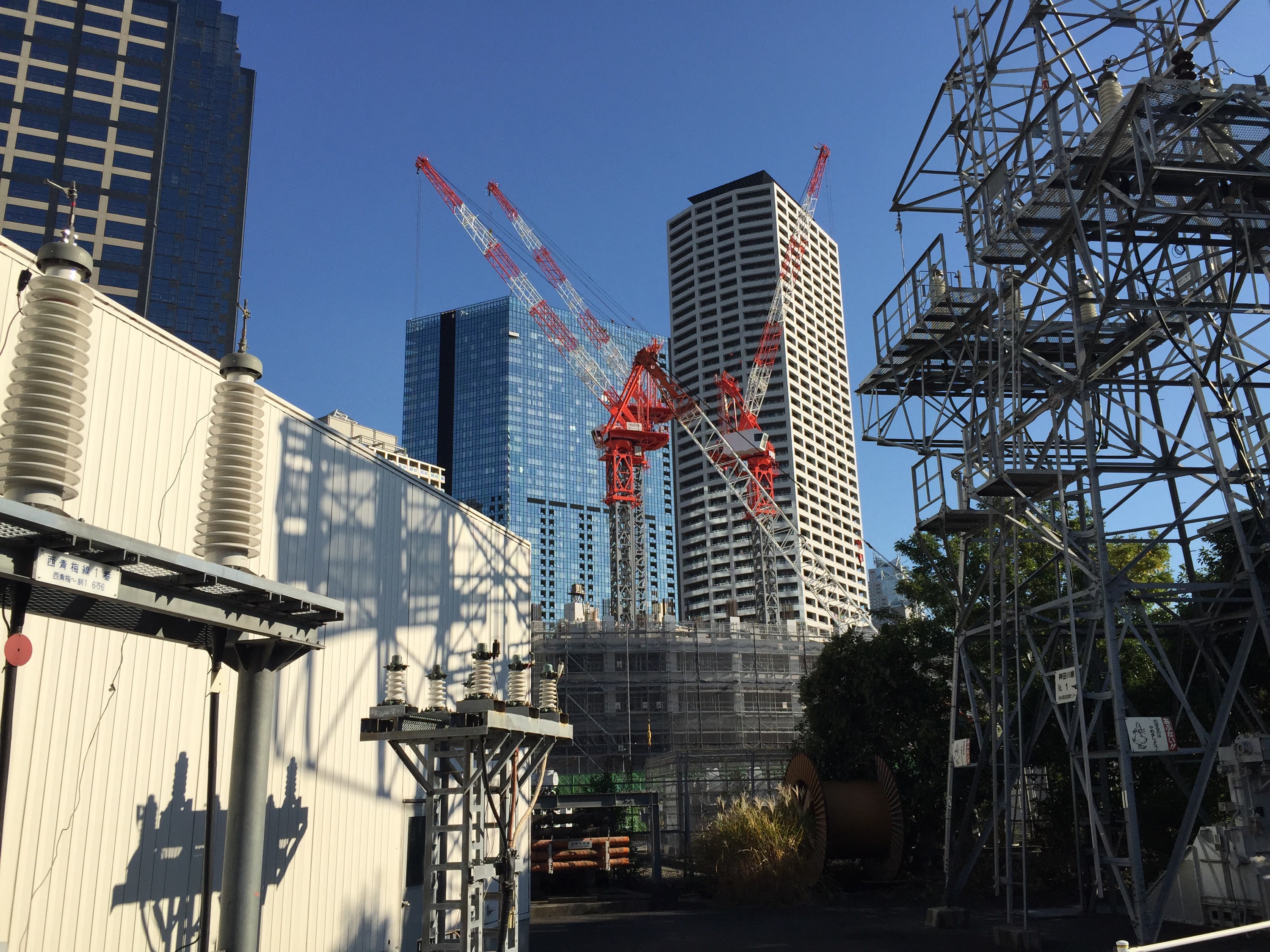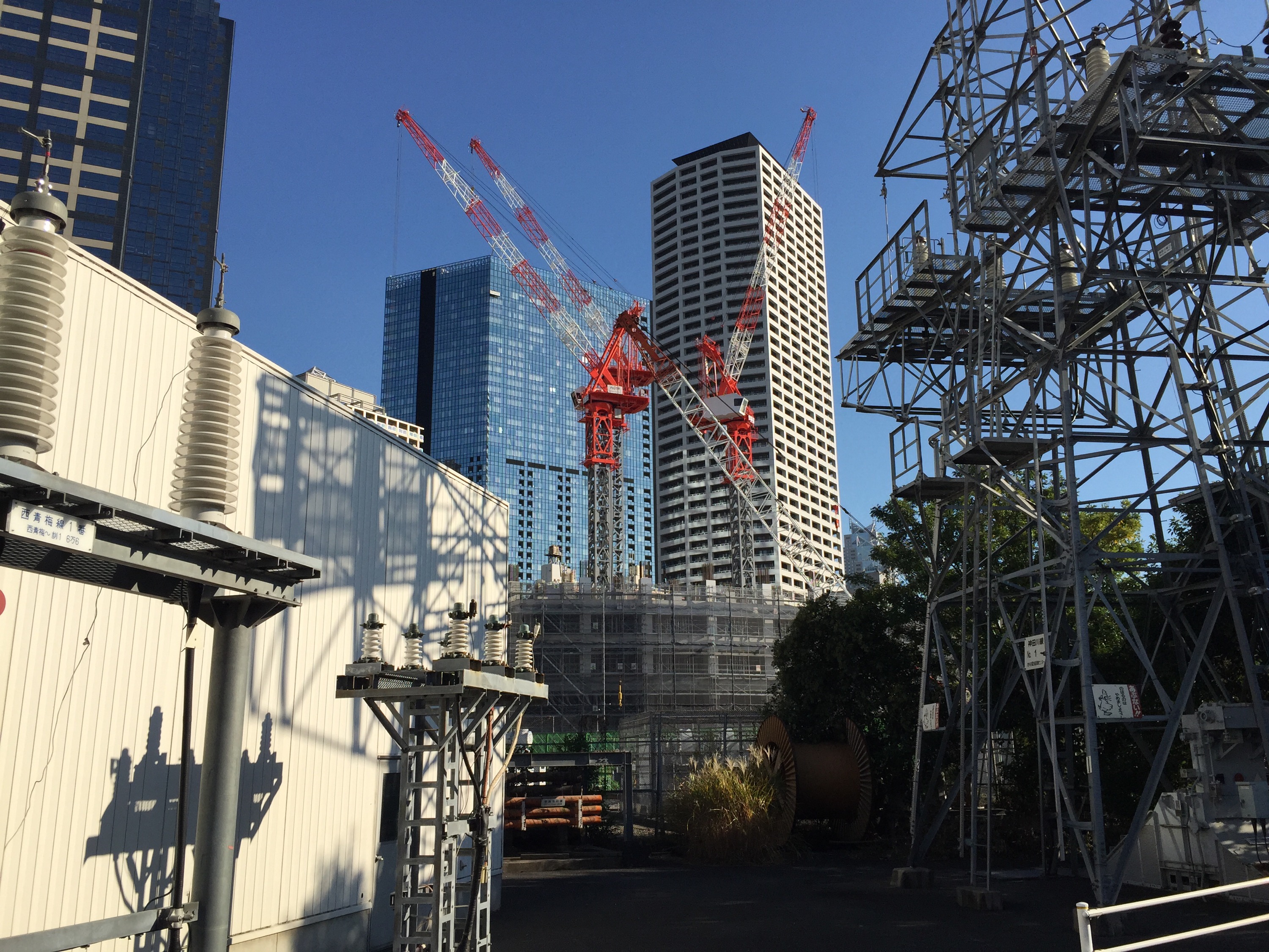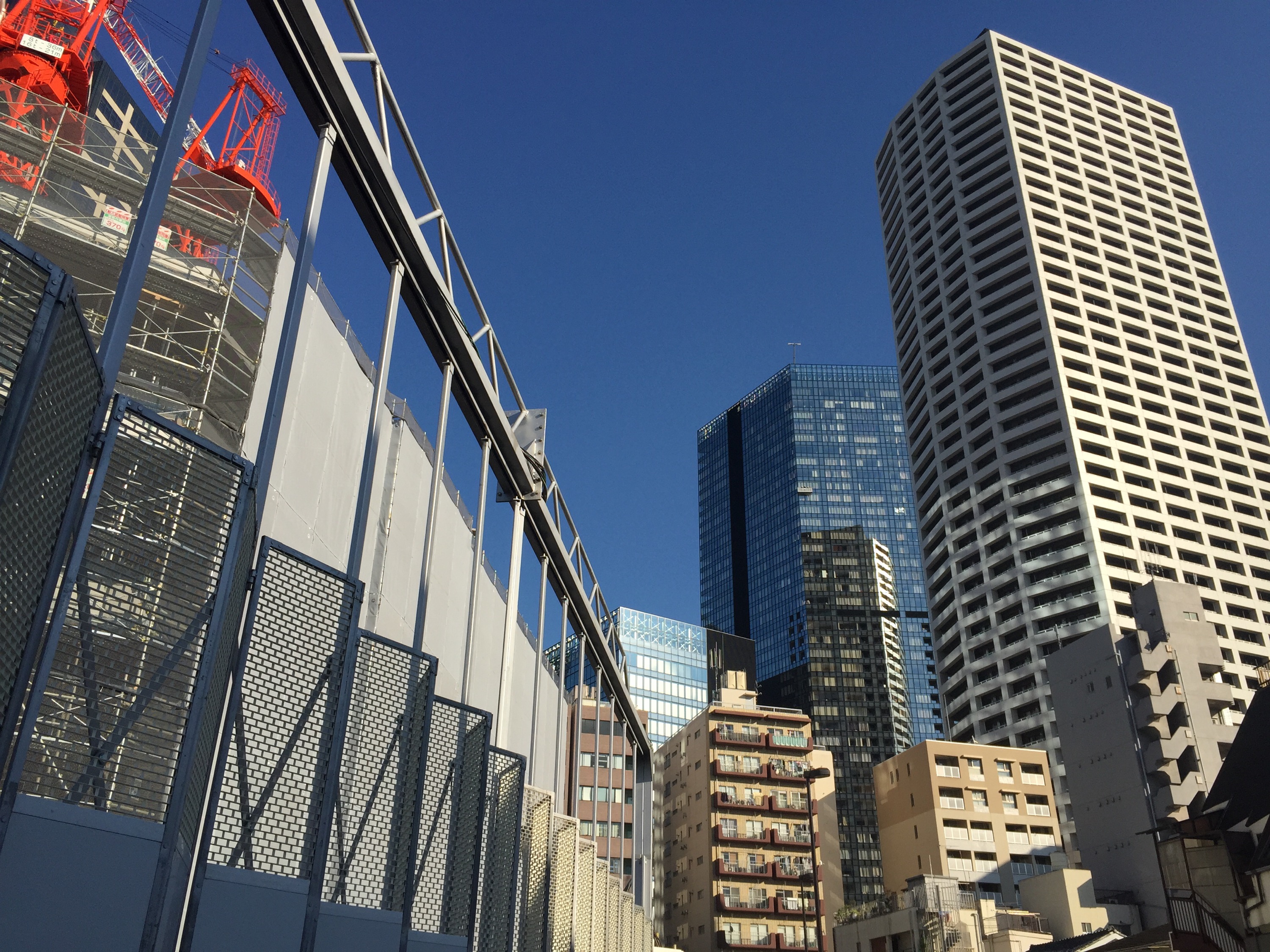 この日は、雲一つない秋晴れで眩しいくらいの太陽光が、真っ赤なタワークレーンを照らしていました。