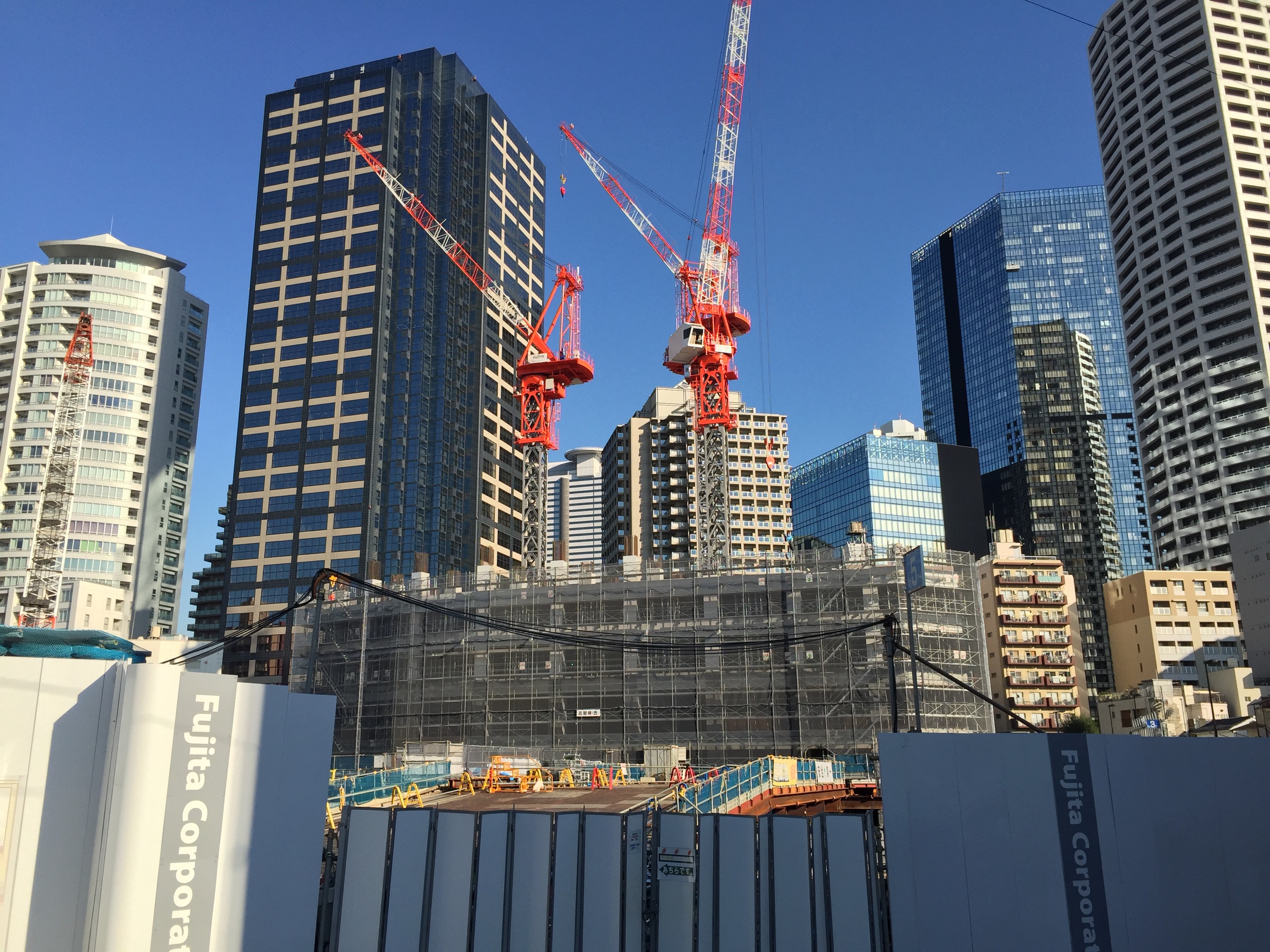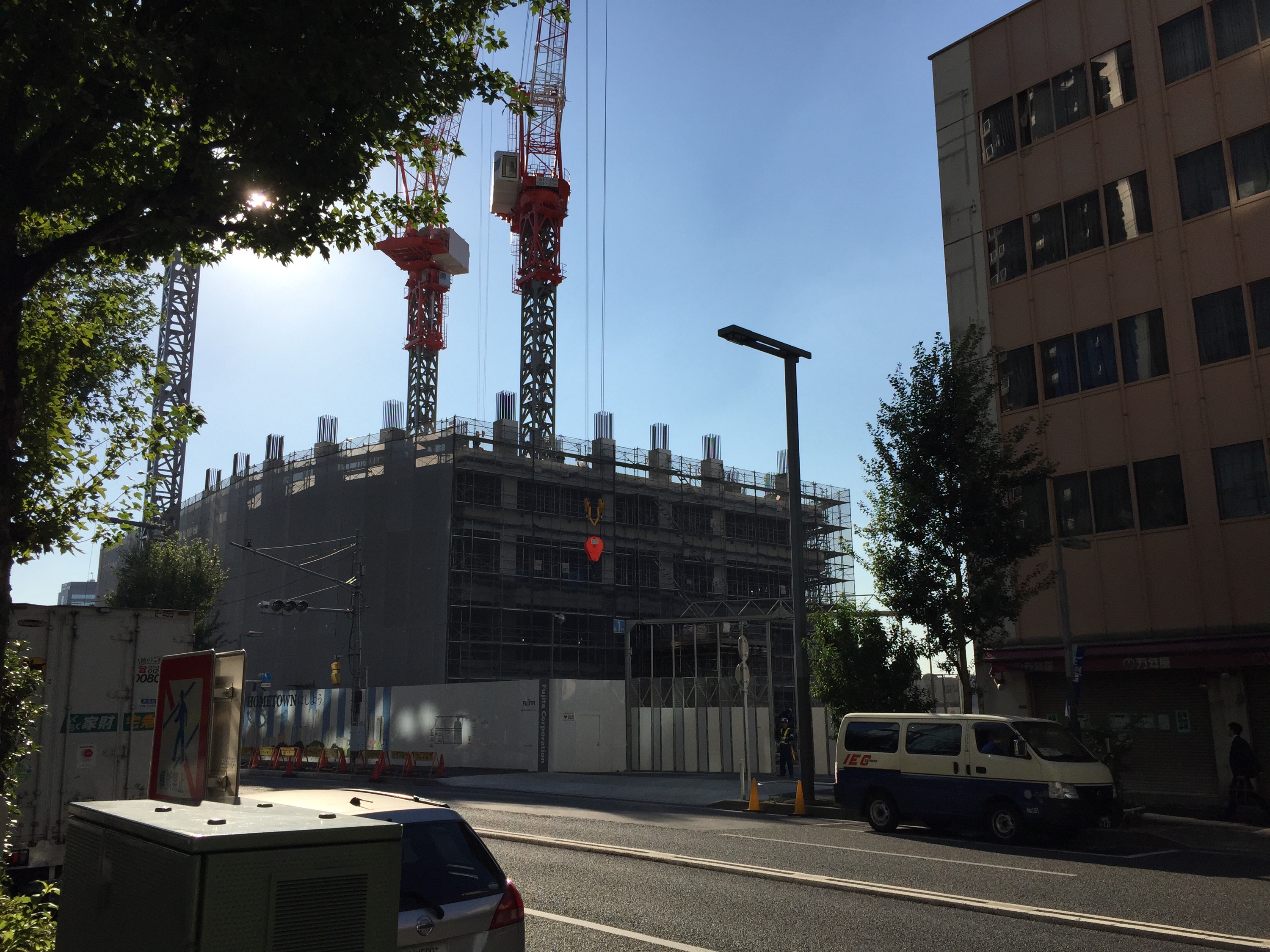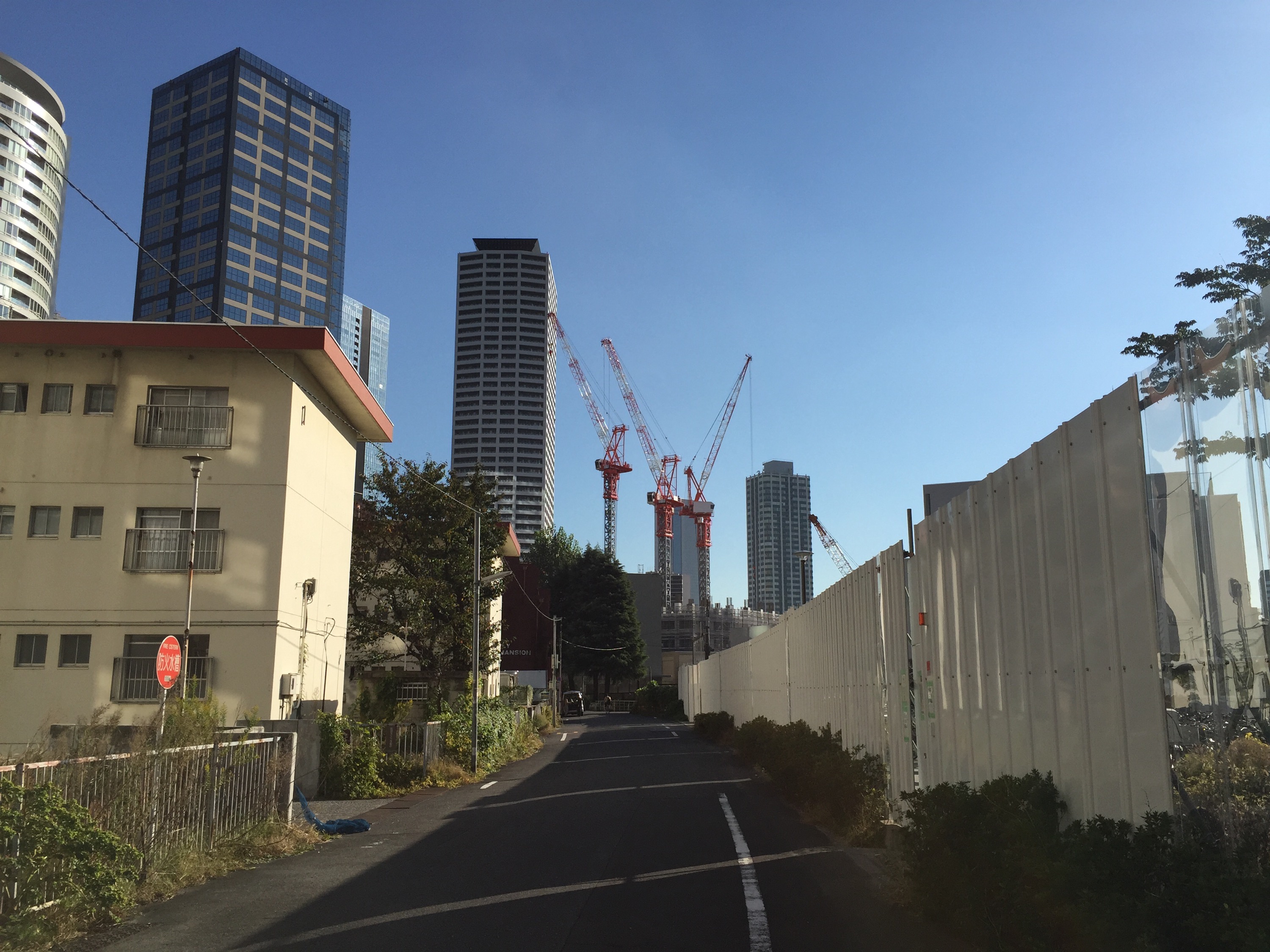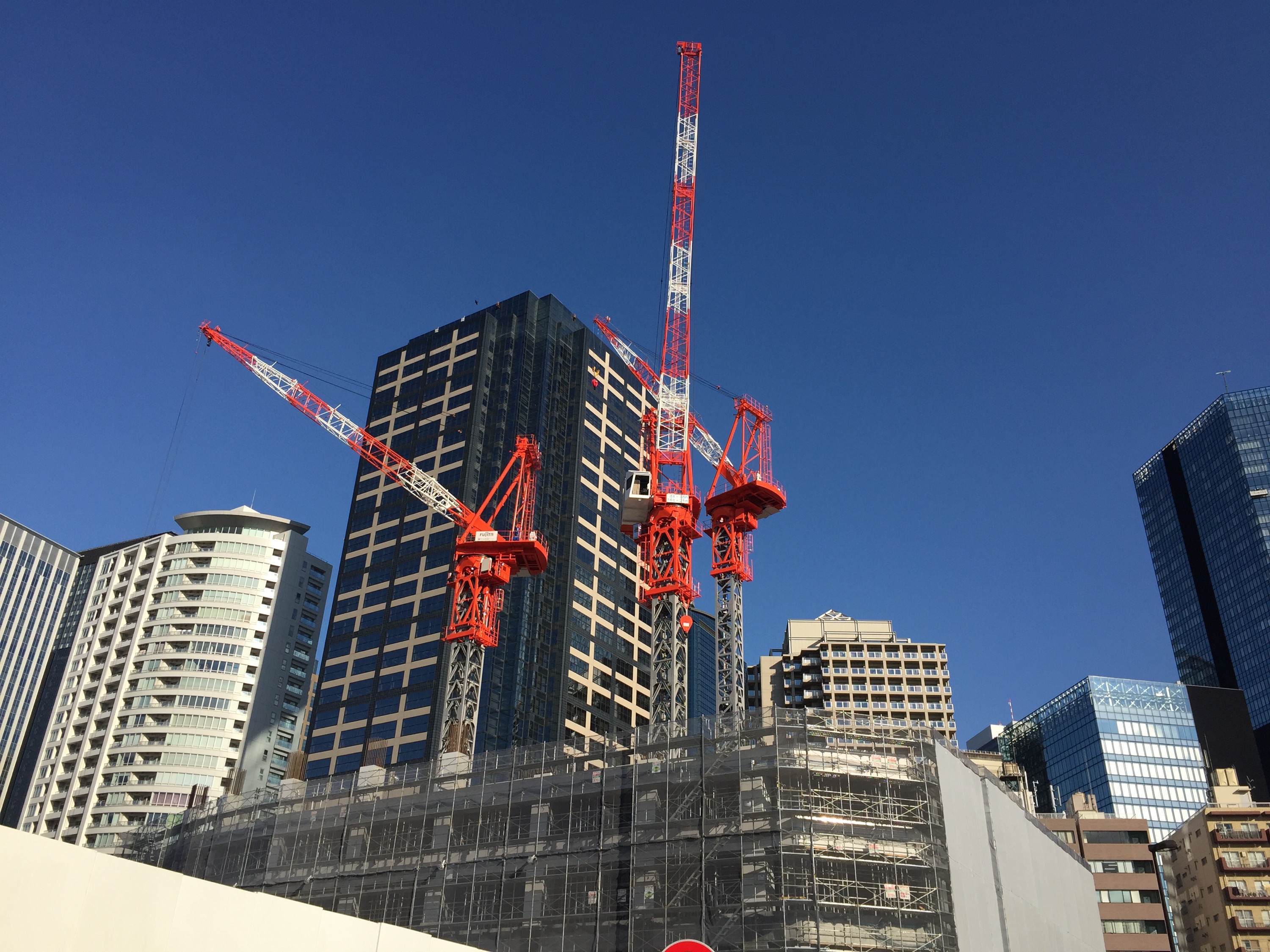 この日は、雲一つない秋晴れで眩しいくらいの太陽光が、真っ赤なタワークレーンを照らしていました。