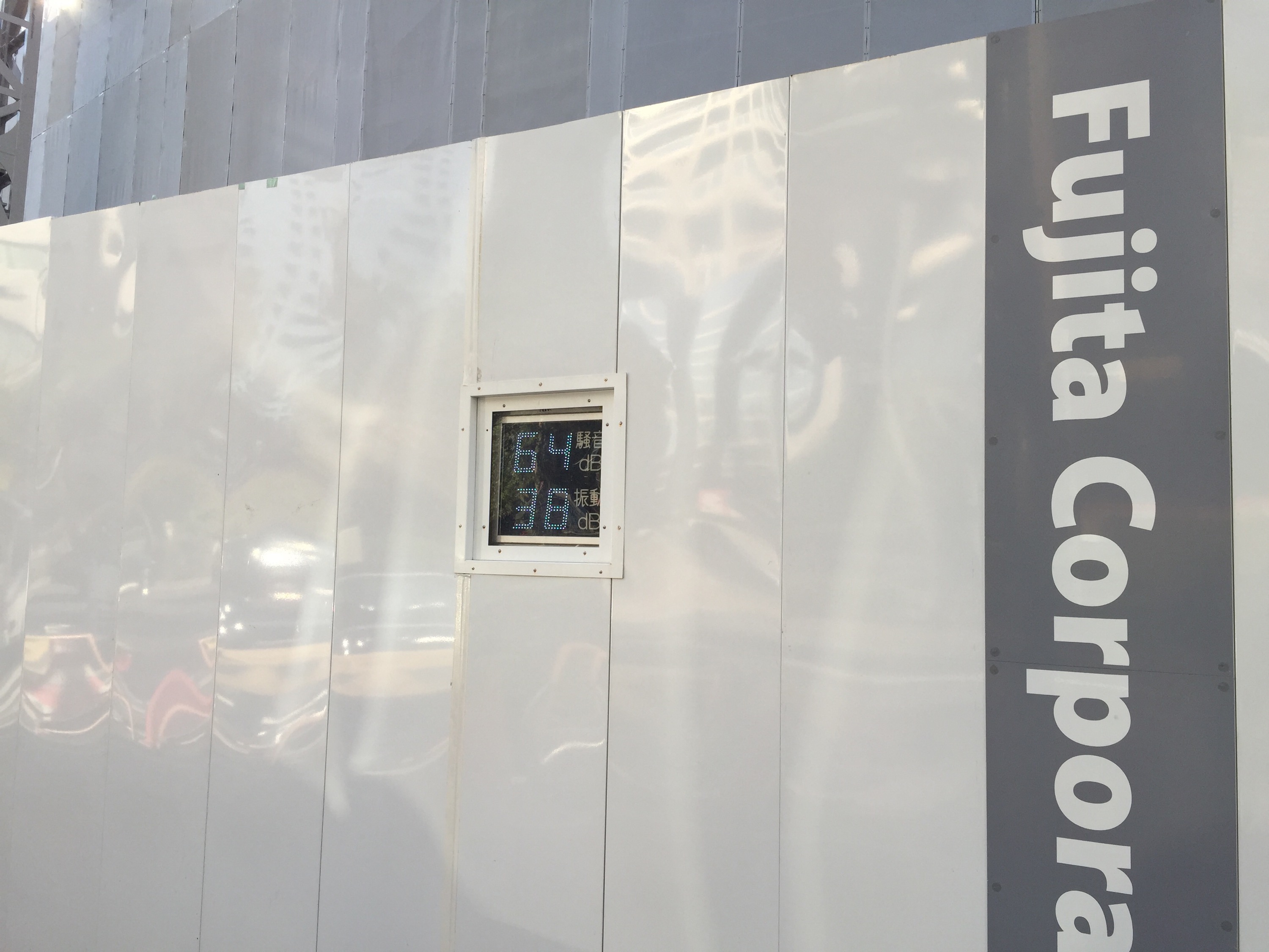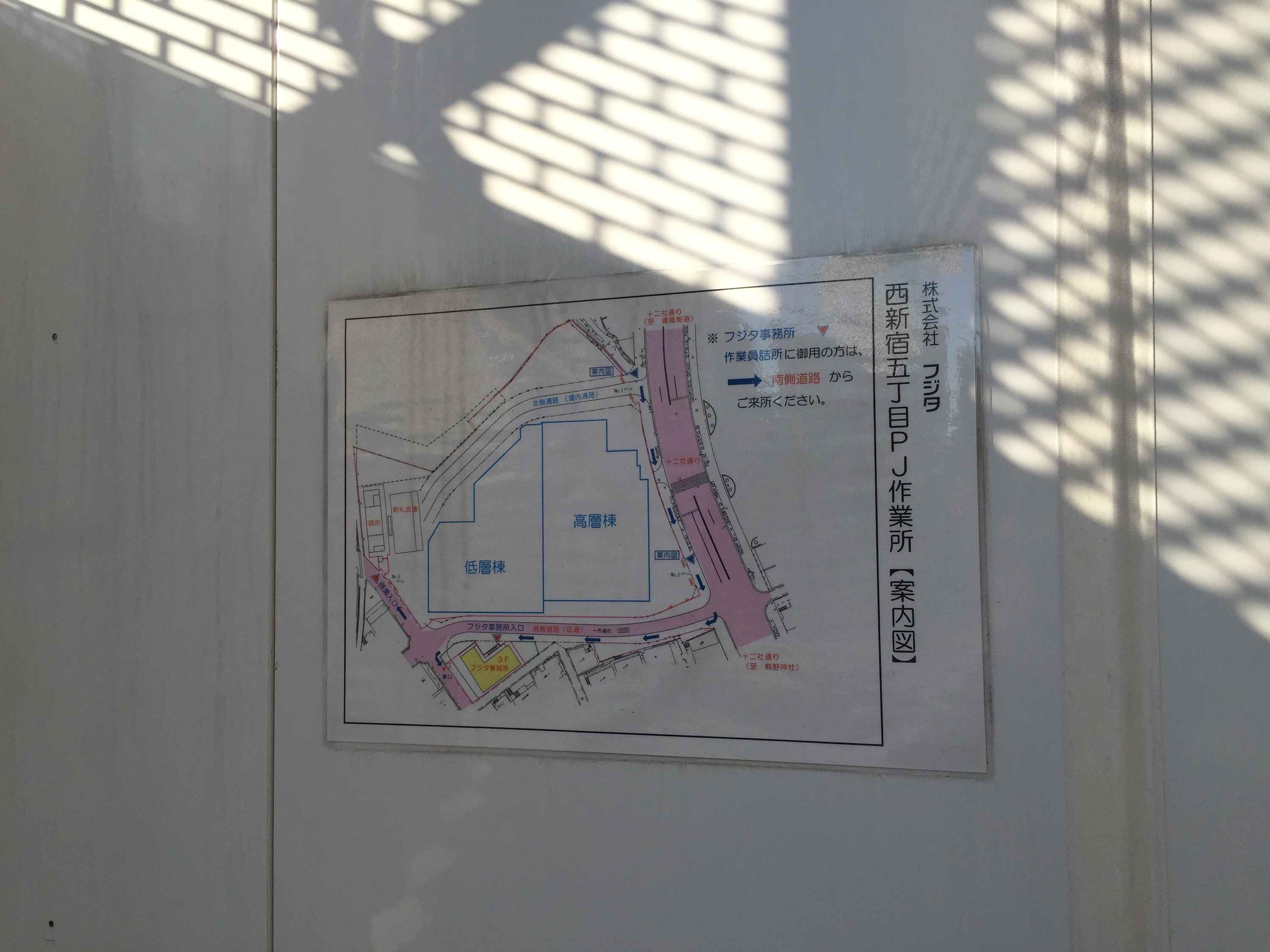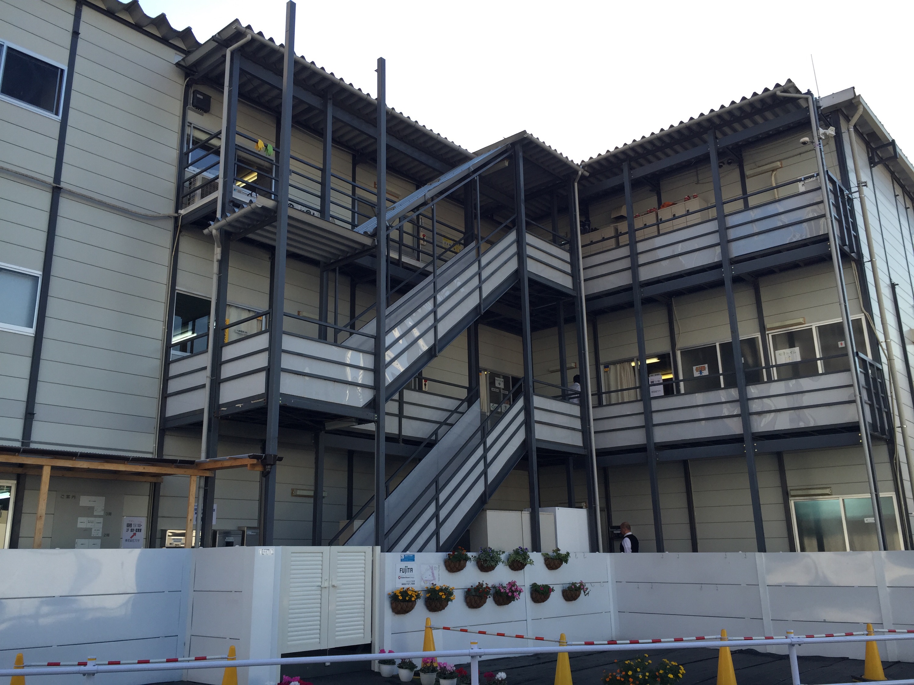 道路の向かい側に、フジタの大きなプレハブ事務所がありました。
