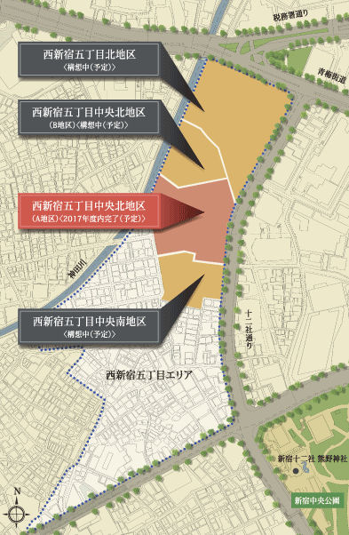 今回ご紹介した現地周辺は、西新宿五丁目中央北地区地区計画にて再開発構想中となっており、『ザ・パークハウス 西新宿タワー60』に隣接する街並みはガラッと変貌する予定です。