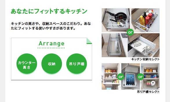 通常、オプションなどでの対応はよく見ますが、最初から造り付けの家具を、こうやって自由に選択できるのはいいですね。