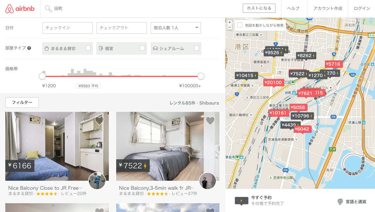 同類のサービスもありますが、Airbnbの規模は段違いで、登録物件数は平成27年8月現在で、世界に150万軒以上、日本では1万3千軒以上です(2万軒以上の報告もあり)。