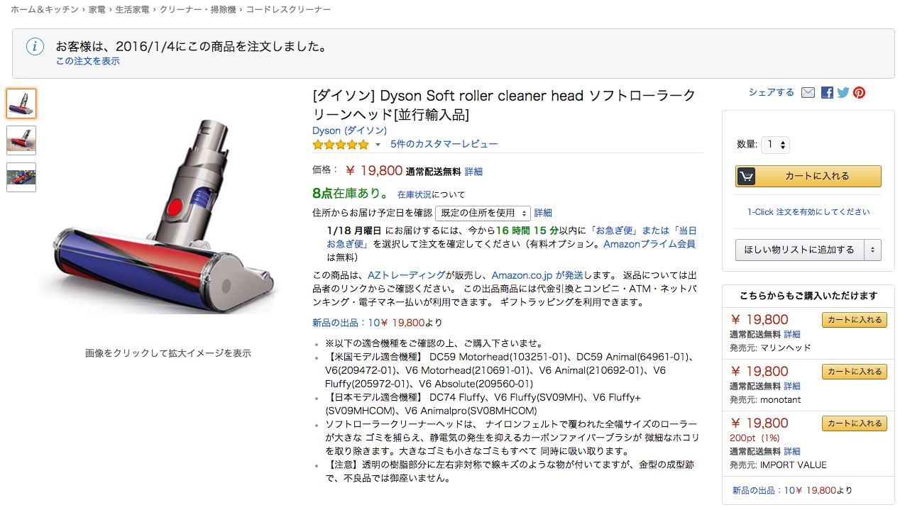 しかし、2015年11月あたりにAmazonで、「ソフトローラークリーナーヘッド」と検索かけてみると、出てきました!