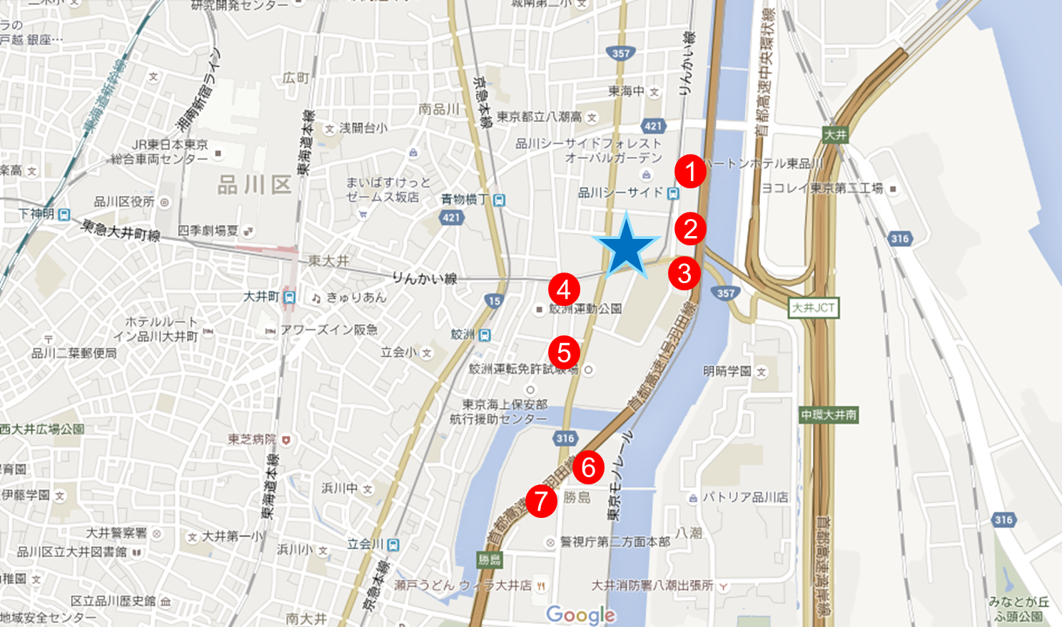 | 交通 | 東京臨海高速鉄道りんかい線「品川シーサイド」駅(B出口)より徒歩3分、京急本線・特急、エアポート急行停車駅「青物横丁」駅(駅舎)より徒歩9分、東京臨海高速鉄道りんかい線・東急大井町線・JR京浜東北線「大井町」駅(駅舎)より徒歩16分 |