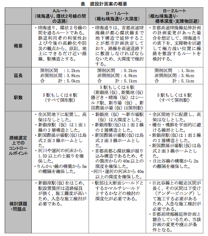 画像引用:都心部と臨海部を結ぶ 地下鉄新線の整備に向けた検討調査報告書より