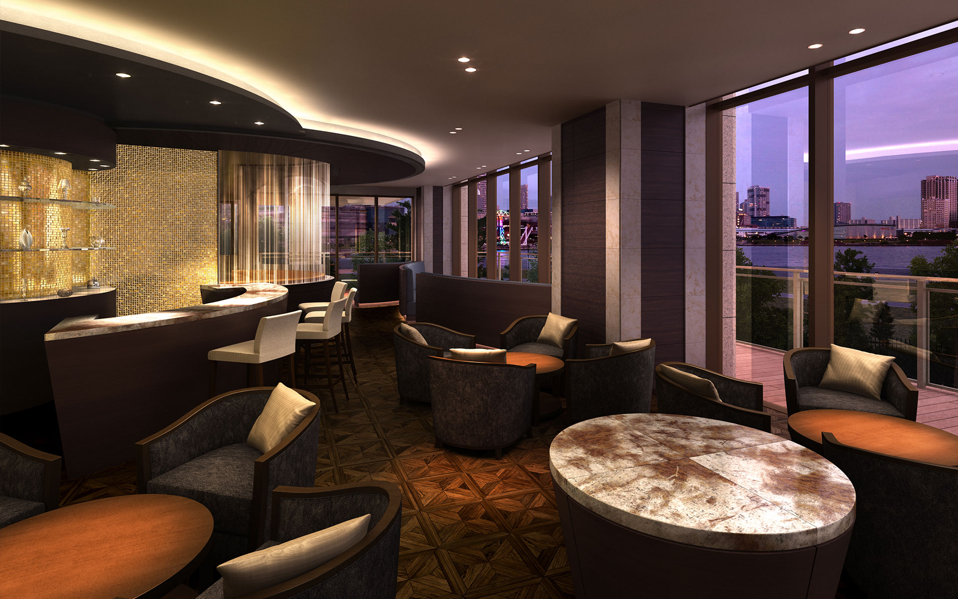 ちょっとした待ち合わせの時に使うには、豪華すぎるくらいホテルライクなバーのように仕上がっています。