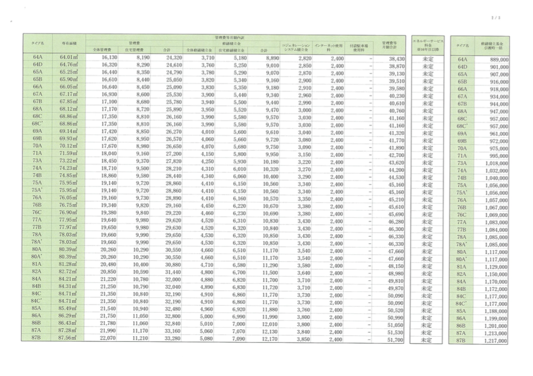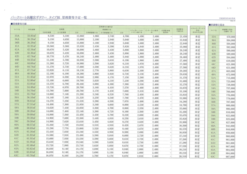 管理費・修繕積立金については、以前の記事でも紹介しましたが、再度載せておきます。