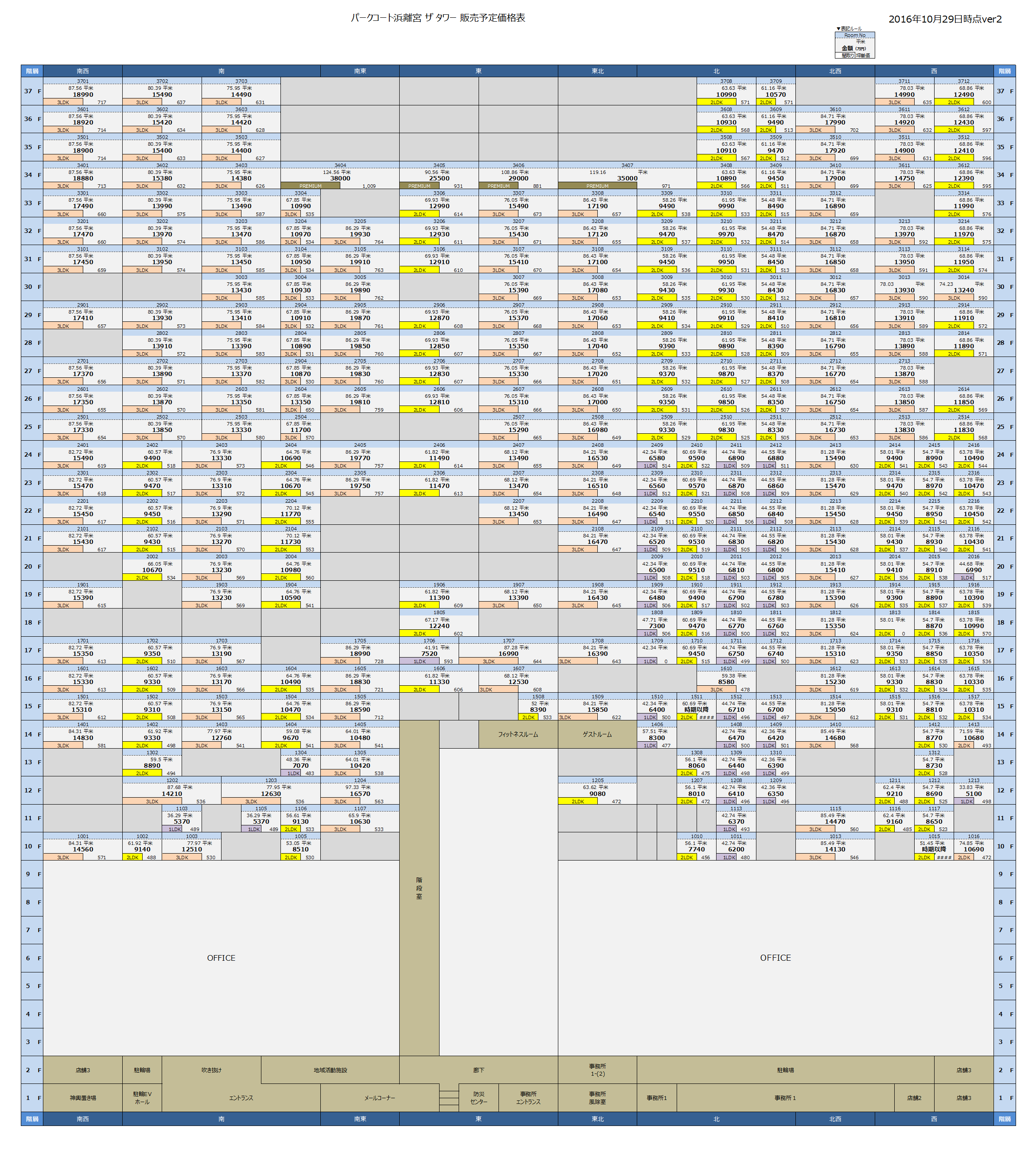 そんな「パークコート浜離宮 ザ タワー」の予定価格表を入手しましたので、アップさせていただきます。(2016/11/06更新)