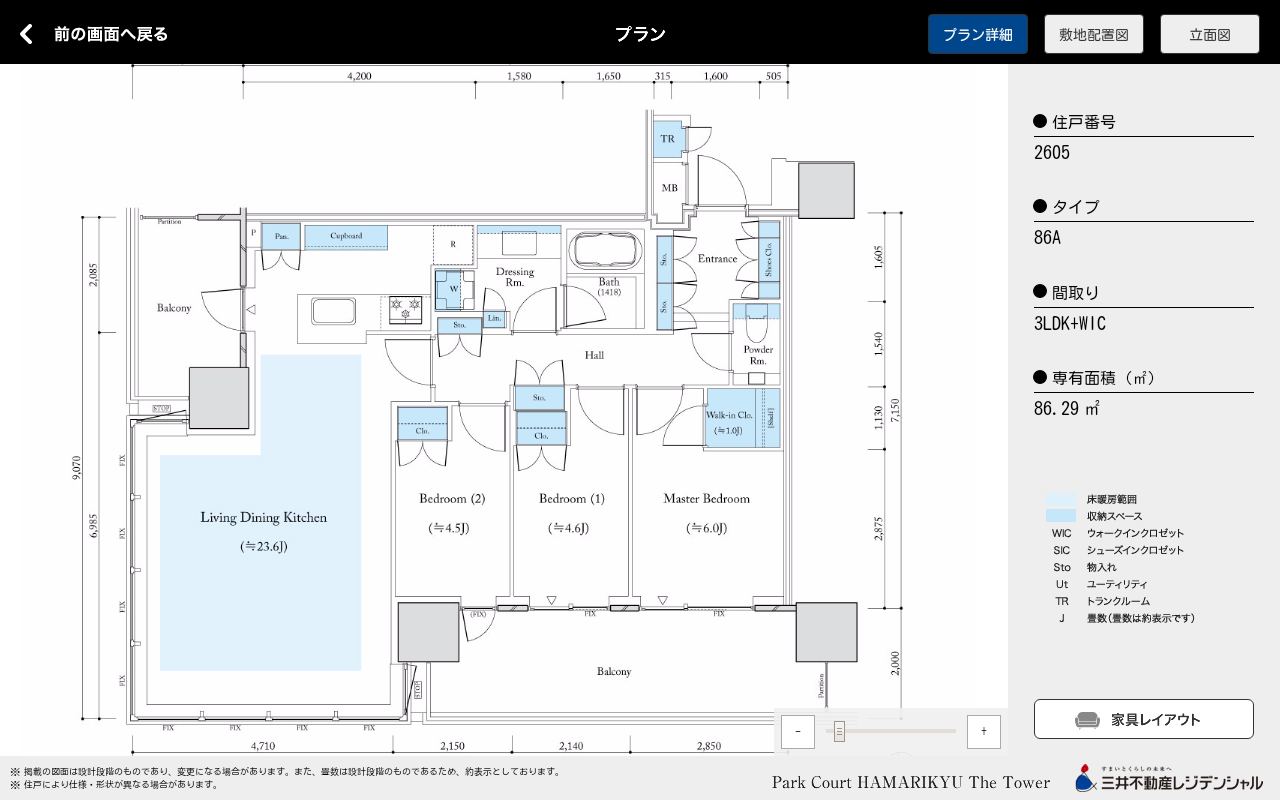 2605号室 86.29平米 3LDK 1億9810万円(坪単価759万円)