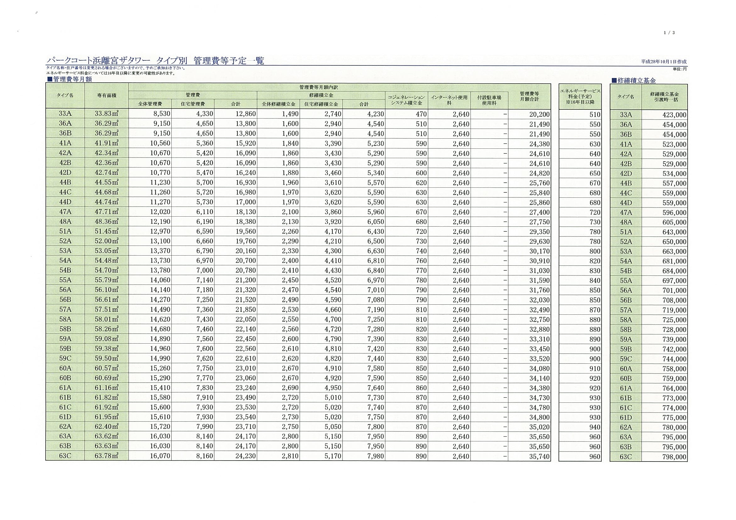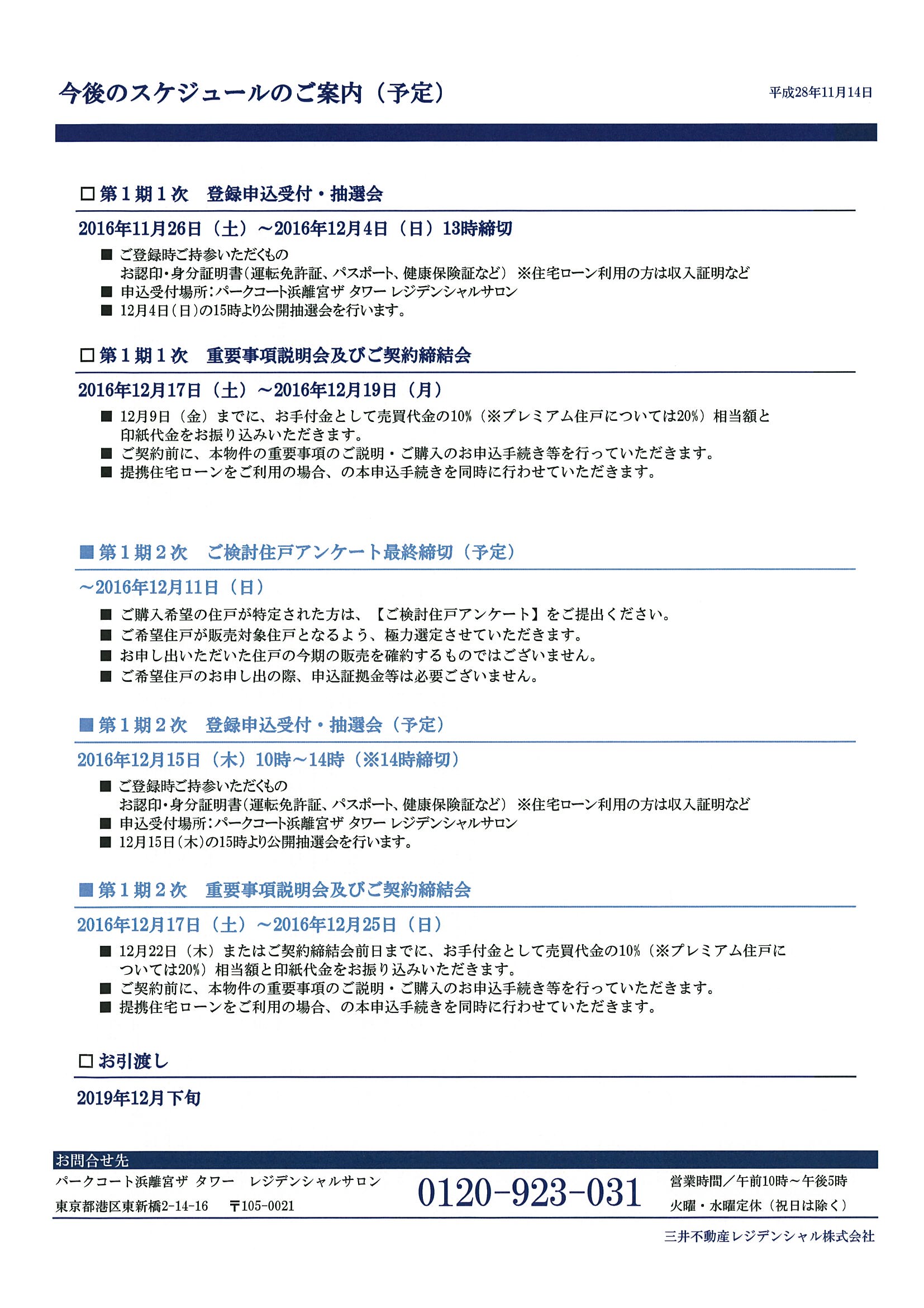 パークコート浜離宮 ザ タワー 販売予定価格表を入手しました