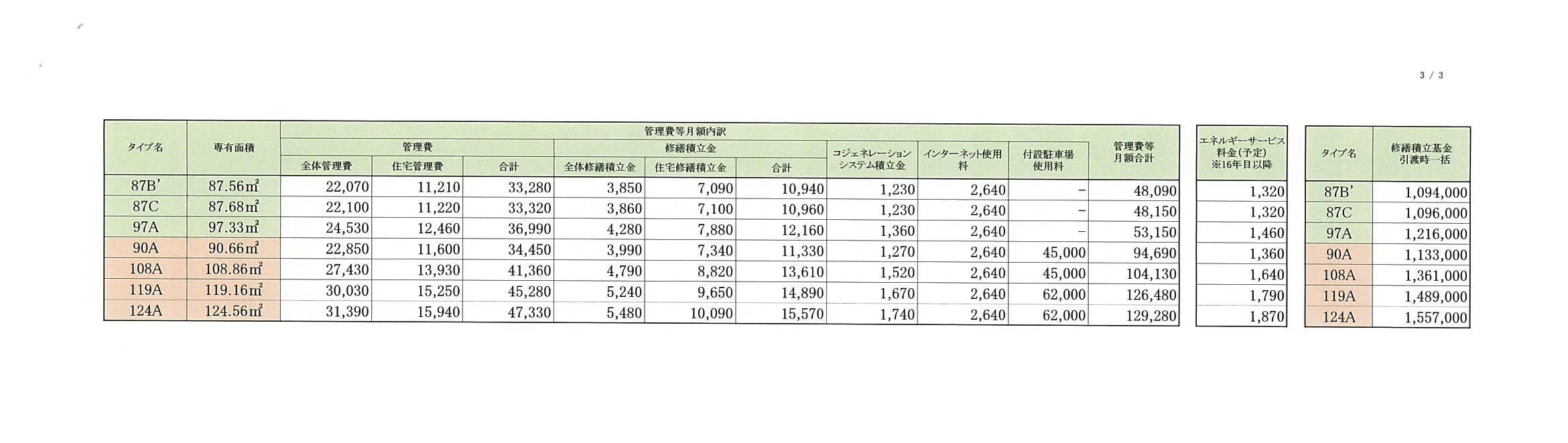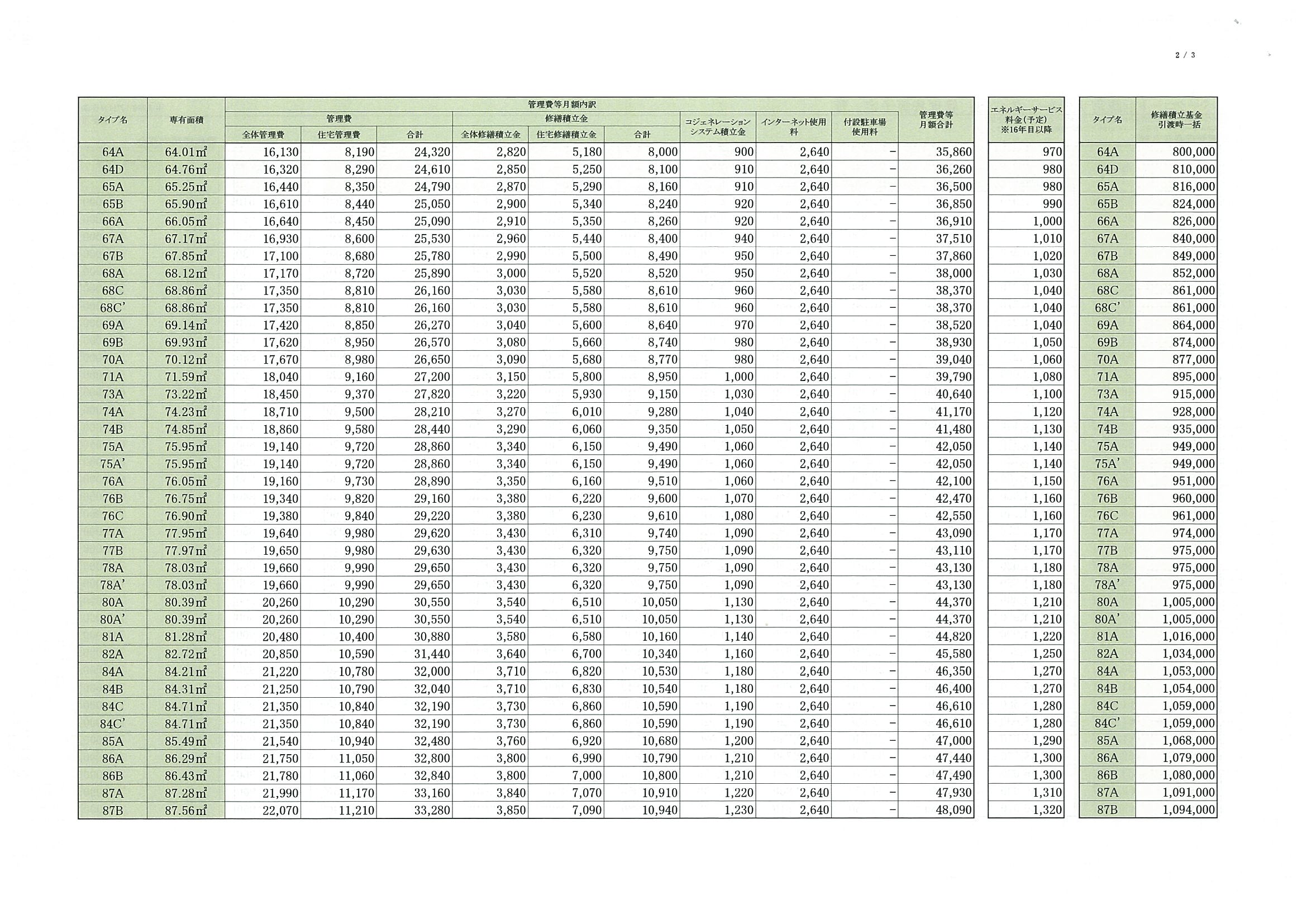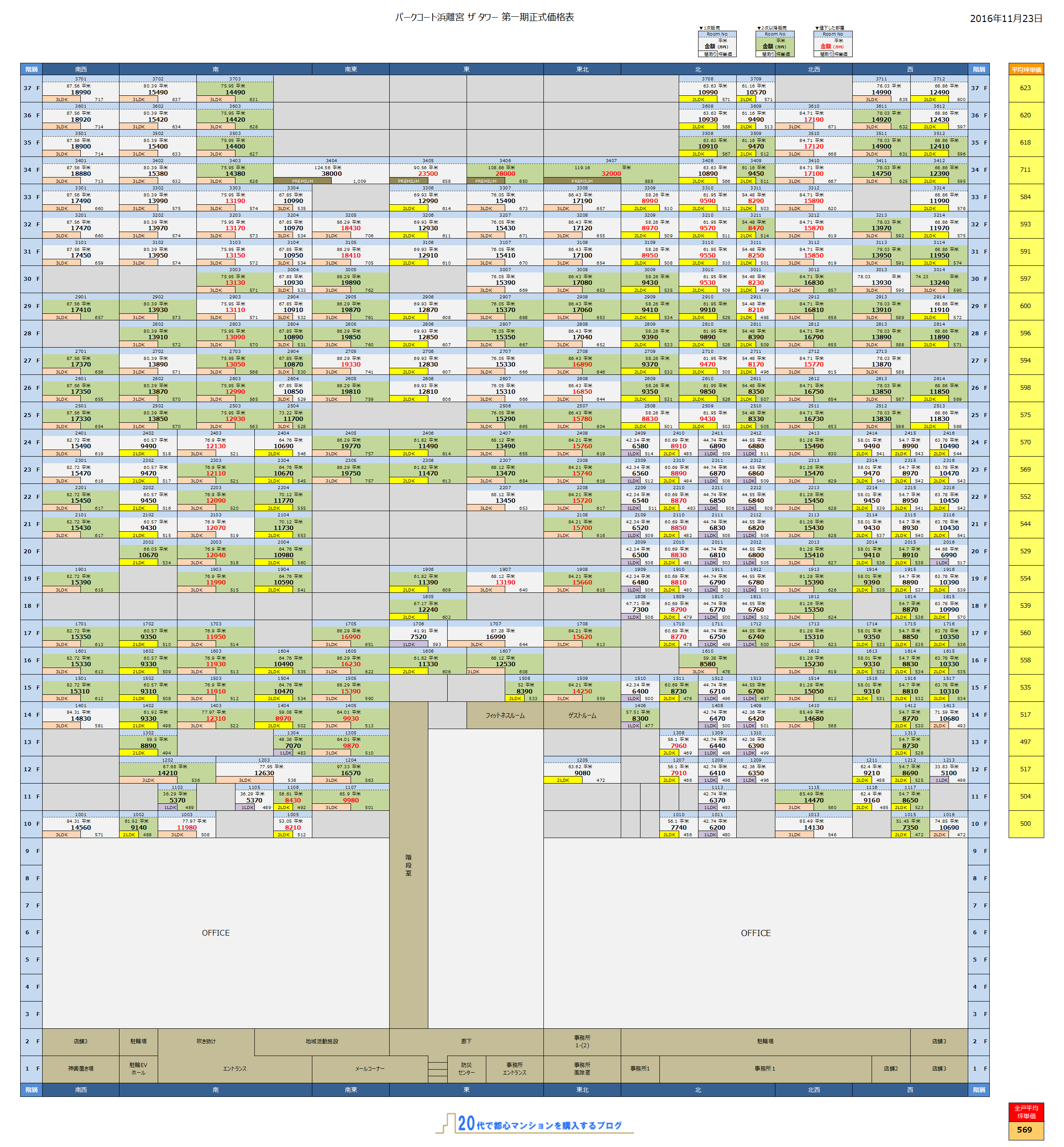 あまり意味がないかもしれませんが、フロアごとの平均坪単価も価格表の右側に載せていますので参考にしてみてください。