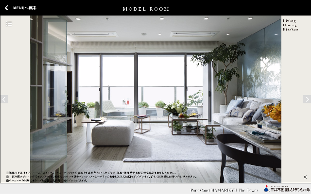 写真撮影はNGですが、配布タブレットにモデルルームの写真を更新していただきましたので、その一部をご紹介したいと思います。