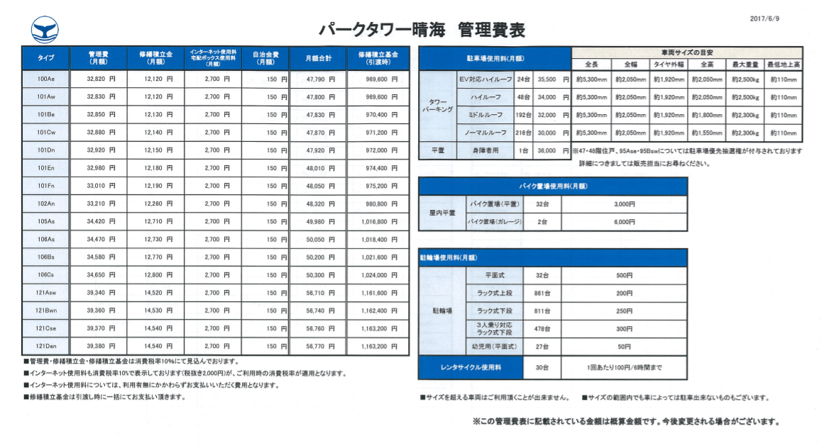 管理費も正式な価格が決まったそうなので、載せておきますね。